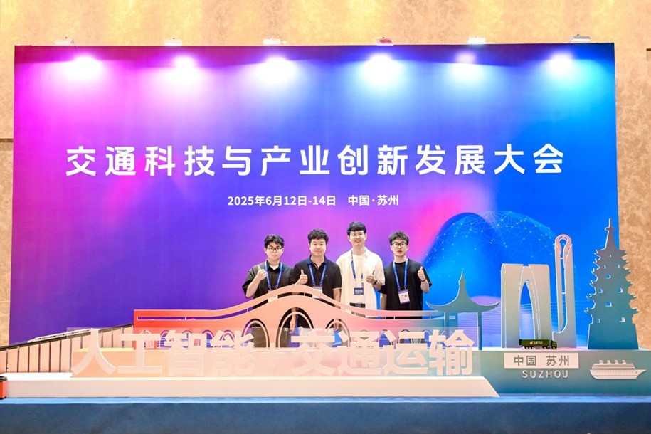 2025年6月12-14日,中国公路学会联合中国航海学会、中国铁道学会、中国航空学会、中国汽车工程学会、中国航空运输协会、江苏省综合交通运输学会共同主办的首届交通科技与产业创新发展大会在苏州隆重举行。课题组博士生王腾,硕士生樊惠彬、王子强、王梦豪参加会议并作学术汇报。