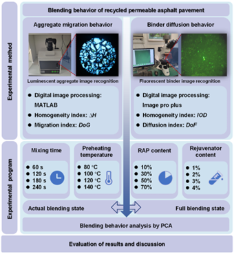 近期,课题组在国际期刊《Journal of Cleaner Production》发表研究论文“Blending behavior of recycled permeable asphalt concrete: aggregate migration and binder diffusion”(再生透水沥青混凝土的混融行为:矿料迁移和沥青扩散)。