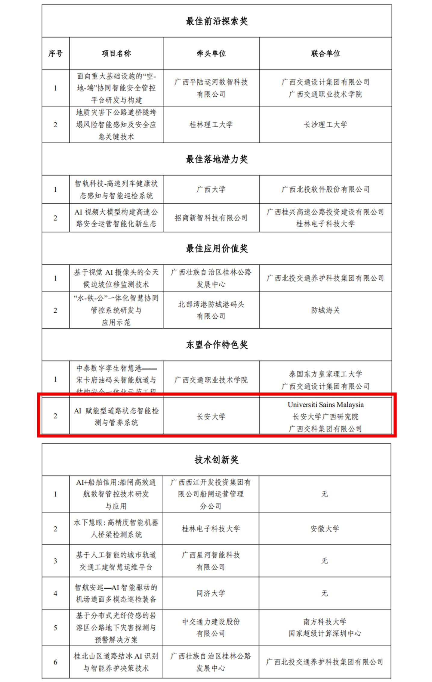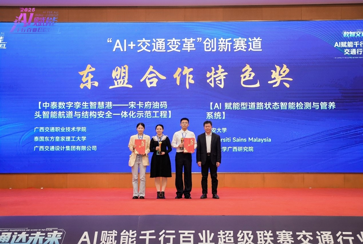 作品紧扣“一带一路”与中国-东盟交通协同背景,融合人工智能、大数据与工程实际需求,探索“跨区域、跨机构”联合攻关新模式,具备良好的应用前景与推广价值,获得专家评委一致认可。
